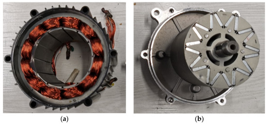 Figure 3. The IPMSM prototype: (a) stator, (b) rotor.