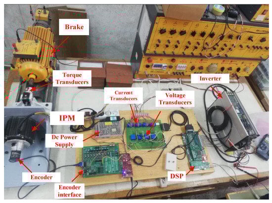 Because of their superiorities permanent magnet synchronous machines (PMSMs) have garnered increasing interest. They have high efficiency, high power density, a wide range of operating speeds, small size and weight, and low noise [1,2,3]. Recently, interior PMSMs (IPMSMs) showed the best overall performance for electric vehicles (EVs) [4,5]. IPMSMs can easily fulfil vehicle requirements with proper torque control [6,7]. However, IPMSMs are well known for their nonlinearity and torque ripple due to their magnetic saturation, spatial harmonics, and reluctance torque [8].