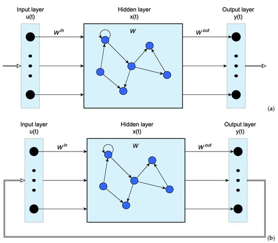 - Racca, A.; Magri, L. Robust Optimization and Validation of Echo State Networks for learning chaotic dynamics. Neural Netw. 2021, 142, 252–268. [Google Scholar] [CrossRef] [PubMed]
