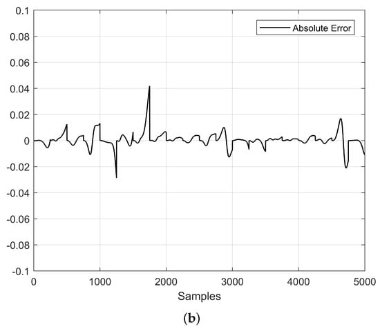 From Table 6 and Figure 10 and Figure 11, one can conclude that there was not a big difference between the number of total predicted steps ahead and that there was also no significant difference between the absolute error. However, when , one can observe more dynamics in the graph despite having a window of 5000 steps.