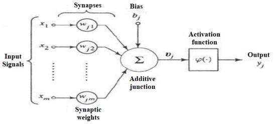 An ANN is based on the neural network structure of a human brain [23]. They are not entirely the same but have some similarities with each other. An ANN is formed by artificial neurons which in turn have the same functionality as biological neurons [24]. Table 1 shows the differences and similarities between ANNs and biological neural networks (BNNs). Figure 2 shows the structure of biological neurons and the basic terminologies attached to them and Figure 3 shows the artificial neuron and its basic functions and parts.
