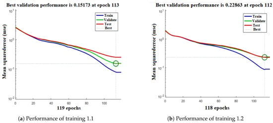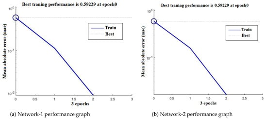 One of the cryptographic approaches utilized in VANETs is the usage of digital signatures. Protecting private keys from outsiders is a complicated process in digital signatures. Furthermore, verifying these keys in real-time scenarios of fast-moving vehicles is a time-consuming and challenging task. As a result, a very effective hardware device is utilized, requiring more work and money. Therefore, the authors attempted to validate private keys using one of the single-layer networks. After the learning process, we stored the keys as network parameters to make them more secure in hardware resources. Figure 10 displays the proposed training model, which contained 256 neurons as input and output. Figure 11a,b present the performance graphs of the training process of both networks. Table 5 presents the comparison of the epochs, time taken, and best performance of the networks to train the desired inputs to meet the final goal, which shows that if we train our network with the learning function, it takes less time in comparison to the learning function for the same network parameters and same input values. Table 5 shows the comparison of network 1 and network 2 based on time and epoch.