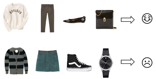 - Han, X.; Wu, Z.; Jiang, Y.G.; Davis, L.S. Learning Fashion Compatibility with Bidirectional LSTMs. In Proceedings of the 25th ACM International Conference on Multimedia, Mountain View, CA, USA, 23–27 October 2017. [Google Scholar]