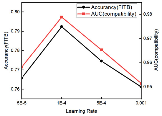 To investigate whether the learning rate had an effect on model performance by changing the size of learning rate, we search the layers in the range of in particular. We show the results in Figure 9. The performance was optimal when the learning rate was 0.0001. The results show that the learning rate cannot be set too high or too low. Too high a rate will cause the model to fail to converge, while too low a rate will cause the model to converge very slowly and even reach a local extreme point.
