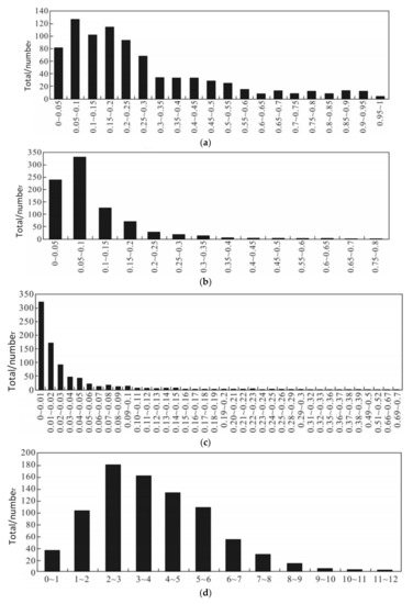 Class imbalance refers to the significant difference in the numbers of training examples of various classes in the target classification [43]. Owing to the limited number of samples with BBOX as the target category in an image, the results of the statistical analysis of the ICDAR2013 [44] dataset are as depicted in Figure 11. The text areas in most images occupy only 30% of the entire image. Most of the widths are also concentrated between 0 and 0.3. The height ratio is concentrated between 0 and 0.15. Therefore, the proportion of text areas in natural scene images is generally small. Furthermore, the shape of the area is narrow and long.