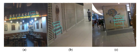 - Nayef, N.; Yin, F.; Bizid, I.; Choi, H.; Feng, Y.; Karatzas, D.; Luo, Z.; Pal, U.; Rigaud, C.; Chazalon, J.; et al. ICDAR2017 Robust Reading Challenge on Multi-Lingual Scene Text Detection and Script Identification-RRC-MLT. In Proceedings of the 2017 14th IAPR International Conference on Document Analysis and Recognition (ICDAR), Kyoto, Japan, 9–15 November 2017; pp. 1454–1459. [Google Scholar]