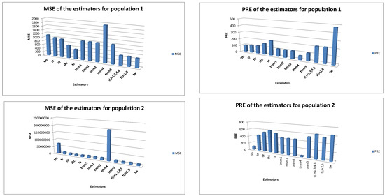 - Furthermore, the results of the numerical study using natural populations, which are reported in Table 2, are also presented through the bar diagrams given in Figure 1. The performance of the proffered estimators can easily be observed from Figure 1. The PRE of the simulation results of Table 3, Table 4 and Table 5 also exhibit the similar tendency and can be easily presented through bar diagrams, if required.