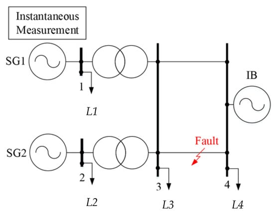 Each synchronous generator is equipped with standard models of AVR and governor control. Loads L1, L2, L3, and L4 are modeled by constant active power extraction, independent of the voltage level and the frequency of the alternating current.