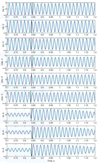 Table 6 compares estimating the disturbance inception time in power systems developed algorithms with existing ones described in [55]. In Table 6, the abbreviation “rms” stands for root-mean-square. The following criteria were selected for comparing algorithms: type of input data, accuracy, and total delay.