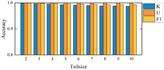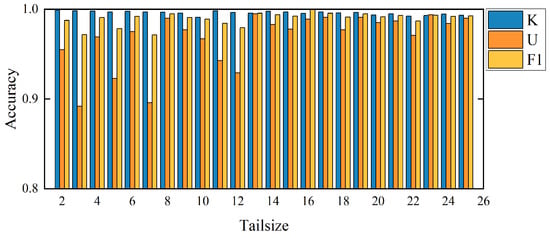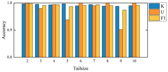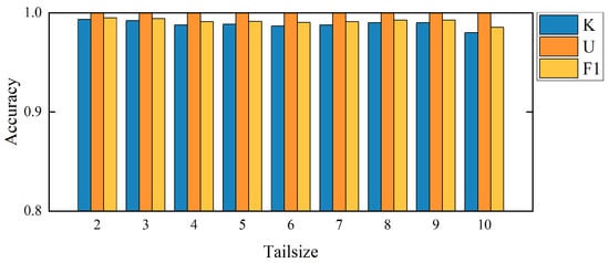 In this section, we verifiy the effectiveness and superiority of the proposed method by comparing the performances of 1DCNN+EVT [18], DVAEC [19], and DOC [16] as reported in their corresponding literature. Table 10 shows the comparative results on four experimental tasks of the CWRU dataset in the literature [18]. The experimental results show that our method is better than other methods in the three evaluation indicators, especially for the recognition of UC, and can achieve a detection accuracy of almost 100% for all four tasks. In short, our method showed superior performance in terms of both KC classification accuracy and UC detection accuracy.