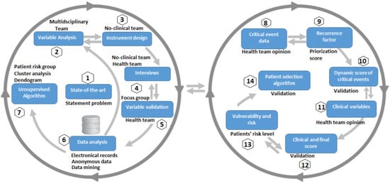In this section, we present the decision–support methodology in the context of COVID-19, which allows for prioritizing and selecting managed patients waiting for medical care in the HCH cardiology unit. The first element corresponds to a dynamic prioritization function based on critical events that impact the health conditions of patients. The second element corresponds to a survey based on clinical variables that the specialty physicians carry out (to add the patient’s characteristics and the disease conditions to the prioritization scheme). Finally, the third element corresponds to a patient selection and scheduling strategy based on (i) dynamic prioritization, (ii) the occurrence and repetition of critical events in patients, and (iii) clinical judgment of physicians in the area.