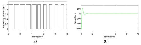 (a) Time-varying probability distribution; (b) controller u under probabilistic gain controller.