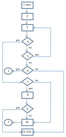 - If the conditions and are met, we return to point 1. In the case , to point 11.