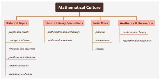 As early as the middle of the 20th century, Wilder proposed the idea of “Mathematics as a Cultural System” [1]. Mathematics, like other cultures, has its own system of practices and ideas, and mathematical culture has drawn the attention of mathematicians, mathematical historians, philosophers, and mathematics educators. In the field of international mathematics education, a cultural turn in research on mathematics education is underway as well, with many researchers examining the influence of culture on mathematics education (e.g., [2,3,4]). It should also be noted there are many benefits of incorporating mathematical culture into mathematics teaching. As M. Kline pointed out, “mathematics detached from its rich intellectual setting in the culture of our civilization and reduced to a series of techniques has been grossly distorted” [5] (p. viii). Therefore, it can be considered that there is a need to integrate mathematical culture in mathematics teaching activities. Furthermore, some researchers have summarized the roles of mathematical culture in mathematics teaching and learning, including improving students’ knowledge, abilities, and attitudes (e.g., [6,7]). These studies have also shown that research pointing to the teaching of mathematical culture is valuable and can provide educators with certain insights about how to integrate mathematical culture into their teaching activities.