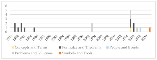 This category refers to mathematical history, focusing on the historical development of a certain knowledge point and its related people, events, and ideas [39]. It is usually used as a background introduction in the Gaokao items, and it also applies when the items require students to prove a formula or theorem. The definition of this category in the OHSMCS is “the mathematical ideas, spirit, language, methods, and perspectives, and their formation and development” [45] (p. 10). This category can be further divided into six specific subcategories: people and events, concepts and terms, formulae and theorems, problems and solutions, symbols and tools, and disciplines and ideas [69].