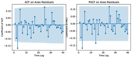 where n is the order of the time-series model. The metric was also considered to identify the most accurate model []; the smaller the , the more accurate the model. The is defined mathematically as follows: