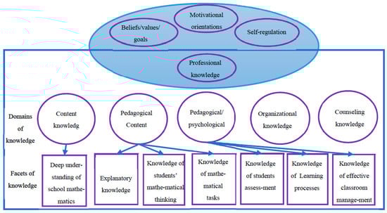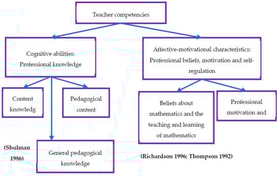 The author of [] Döhrmann et al. (2012) developed the model of teacher competence based on synthetic multi-elements of previous studies and emphasized two main factors: cognitive abilities and affective-motivational characteristics (Figure 4).