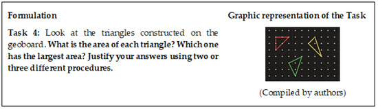 The first study analysed the responses to a written questionnaire, on the area of flat figures, from a group of 147 preservice teachers (PST) in the third year of the Primary Education Degree. PSTs had one week to answer the questionnaire and send it in pdf or word format. The questionnaire consisted of a total of eight tasks: three tasks that respond to contexts of equal distribution or comparison and reproduction of shapes, and where the use of formulas was prohibited (Tasks 1, 2 and 3); two measurement tasks involving the use of different procedures (Tasks 4 and 5); a task of classification of statements and another of definition of the concept of area (Tasks 6 and 7); finally, a task of analysis of students’ answers (Task 8). In this manuscript, tasks 4 and 8 of the questionnaire are analysed. Task 4 (Figure 2) was designed by the researchers and PSTs had to solve it using two or three different procedures. Task 8 (Figure 3) is based on a previous study (Caviedes et al. [31]) and PSTs had to analyse a high school student’s resolution of an area task. In task 4 PSTs established a greater number of mathematical connections, as the task required to be answered using different procedures. This allowed PSTs to use procedures of a geometric and numerical nature in a joint manner. In the case of task 8, when PSTs were asked to analyse students’ answers, mathematical connections linked to their mathematical and pedagogical knowledge were established. This did not happen in the rest of the tasks.