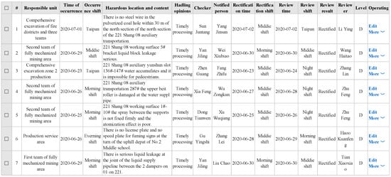 With the rapid development of computer technology, risk early warning and system security rely more and more on computer and information technology. An evaluation security system based on dynamic Bayesian networks has been constructed [45]. High reliability software systems have been developed to prevent failures and improve system safety [46]. An intelligent software platform has been developed to improve the quality of the process hazard analysis (PHA) by combining hazard and operability studies (HAZOP), layer of protection analysis (LOPA), safety requirements specification (SRS) and safety integrity level (SIL) [47]. In coal mining enterprises, the safety management information system has gradually improved [48,49,50,51].