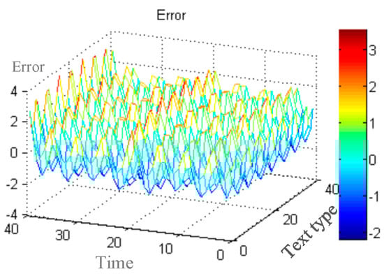 The optimized actual risk data is shown in Figure 6. Compared with the predicted data (Figure 7), the changing trend was consistent, indicating that the optimized ANFIS did not affect the change trend of the predicted risk. In order to demonstrate the convergence effect of the optimized ANFIS, the error was calculated, as shown in Figure 8. From Figure 8, the errors were all within 10 and were reduced by about 16%, indicating that adjusting the learning rate improved the ANFIS convergence effect and reduced the errors.