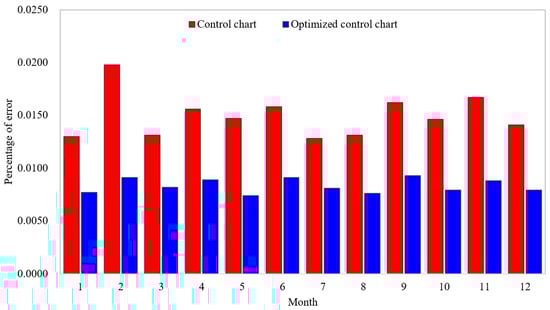 In Figure 11, the abscissa is the date, and the ordinate is the risk quantity. The forecast data for 18 April 2021 and 18 June 2021 are the forecast violation data. Figure 11 shows both the actual number of three-violations and the predicted data. The three dashed lines show the UCL, Cl, and LCL of the control diagram. The predicted data from 17 April to 18 May showed that the risk data exceeded the UCL twice. In fact, the number of risks on 29 April (point a in the figure) and 7 May (point b in the figure) were abnormal, exceeding the upper limit of the control chart. This indicates that accidents may have occurred in coal mining enterprises. However, the coal mining enterprises have strengthened their safety supervision, found and solved the hidden dangers in time, and restored normal safety production. The three-violations were within the controllable range from 18 May to 18 June and the behavior safety of the coal mine was in a normal state. Through comparative analysis, it was found that the non-optimized control chart was misreported seven times during this period, while the optimized control chart was misreported three times. The error of the optimized control chart was reduced by about 57%.