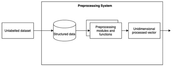 To test its functioning, we also developed a use case representing a system working in a real environment. Therefore, the article proposes the use of Apache Spark [], as mentioned in [], particularly one of the Python APIs offered by Spark, PySpark [], which includes a library of machine learning models (MLlib) for processing streaming logs from these heterogeneous sources. Unsupervised learning algorithms can be run and integrated into the overall Spark ecosystem to accomplish the task of detecting anomalies in real time. Similarly, the environment provides all necessary tools for data pre-processing and a subsequent connection to an ELK [] system (ElasticSearch, Logstash and Kibana) where the result can be visualised and analysed. Three unsupervised learning models are proposed: K-Means, Bisecting K-Means and GMM, as they are among the best known unsupervised learning models that allow grouping data into clusters [].