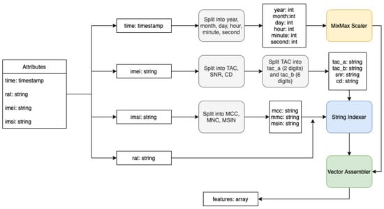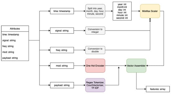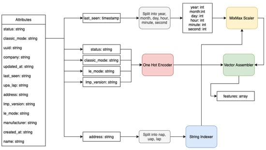 - StringIndexer—PySpark 3.3.0 Documentation. Available online: https://spark.apache.org/docs/latest/api/python/reference/api/pyspark.ml.feature.StringIndexer.html (accessed on 13 September 2022).