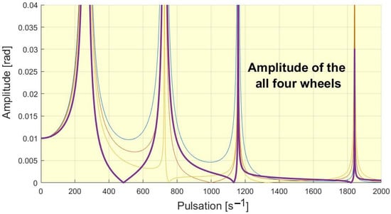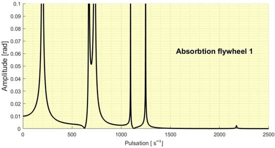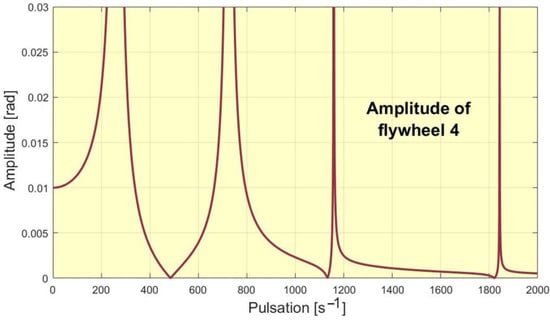 In Figure 4 it can be seen the amplitude of the forced vibrations at different pulsations/excitation frequencies of the flywheel 5.