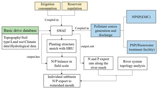 The SWAT model can explain hydrology and pollutant transportation processes well; however, the generation and discharge of different pollutants, as well as the irrigation and reservoir regulation behavior should be preprocessed to couple with the SWAT model.