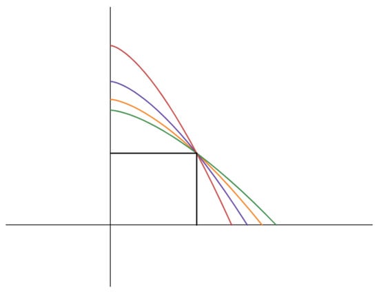 Before proving Theorem 7, we prove some lemmas first. It turns out that for all fixed , the function possesses the same properties (see Figure 6). Let be fixed values, and we can exclude which has already been discussed.