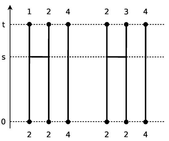 - Durrett, R. Probability Models for DNA Sequence Evolution, 2nd ed.; Springer: New York, NY, USA, 2008. [Google Scholar]