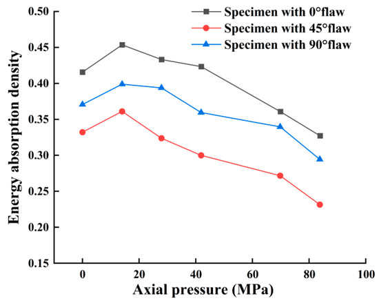 - It was found that the energy absorption density and energy utilization efficiency of the sample first increase and then decrease with the increase of axial pressure, and both of them increase first decrease and then increase with increase of the flaw angle.