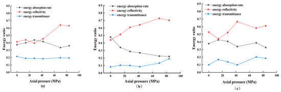 Energy ratio under different axial static pressures of: (a) 0° flaw; (b) 45° flaw; (c) 90° flaw.