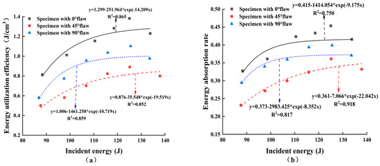 Relationship between incident energy and (a) Energy utilization efficiency (b) Energy absorption rate.