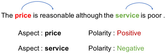 Aspect Level Sentiment Classification (ALSC) is a fundamental subtask of fine-grained sentiment analysis, which currently receives a great deal of attention [1]. The main focus of ALSC is to identify the sentiment polarity (e.g., positive, neutral or negative) of aspects explicitly given in sentences. For example, in the sentence “The price is reasonable although the service is poor” (Figure 1), the sentiment toward aspects price and service is positive and negative, respectively.