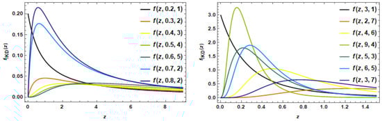 The CDF (3) comprises several well-known distributions, including (i) the Lomax distribution for (ii) the beta type II (inverted beta) distribution for (iii) log-logistic distribution for (iv) the inverse Weibull distribution as and the generalized exponential distribution when According to reference [29], the IKD has a long right tail, and when compared to other distributions, the IKD gives optimistic forecasts of uncommon events happening in the right tail.