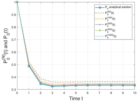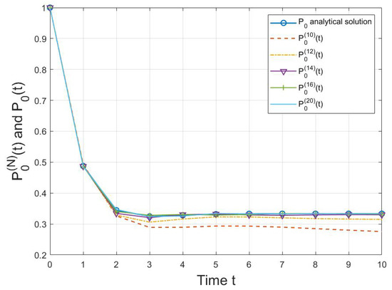 By using the algorithm, we can obtain the approximating solution for the system in bounded interval . Moreover, the convergence Theorem 6 and Corollary 1 also indicate that the approximating solution can approximate to the transient solution with arbitrary precision as .