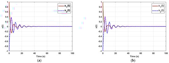 State trajectory of the system for Example 1: (a) State trajectory of the system for Example 1 with ; (b) State trajectory of the system for Example 1 with .