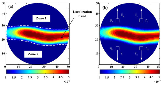 - Changes in the difference between the relative tensile displacements of two groups of measurement points on the localization zone also reflect the evolution of deformation localization of the specimen. When the deformation localization begins in the center of the specimen, the displacements of the two groups of measurement points are relatively consistent at the beginning of the growth, and the difference between them generally begins to increase in the middle.