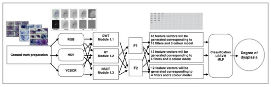- Bora, K.; Mahanta, L.B.; Das, A.K. Fuzzy NSCT based feature extraction method for automated classification of Pap smear images. Int. J. Appl. Eng. Res. 2018, 13, 6709–6716. [Google Scholar]