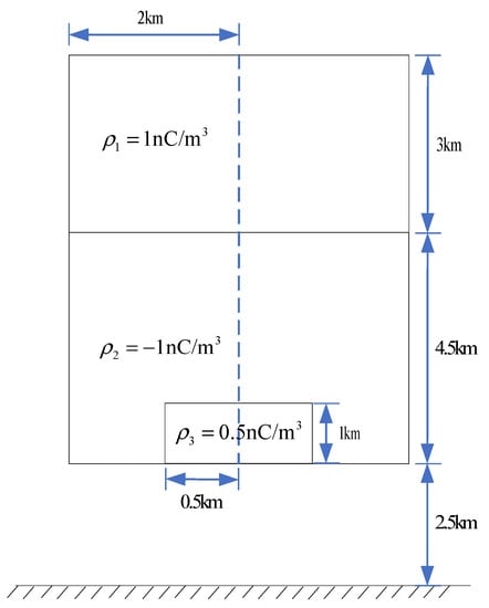 The computation time which is spent on calculating the electrostatic field generated by a thunderstorm cloud are 15,655 s (4.27 h), 0.01 s, and 0.03 s relatively by using the exact solution, the first-order approximate solution, and the second-order approximate solution by the same version of MATLAB (R2021b) on the same configured computer (Inter(R) Core (TM) i5-10210U CPU @ 1.6 GHz 2.11 GHz). It can be seen that compared with the computation time using the exact solution, the computation time using the first-order approximation and the second-order approximation are both greatly reduced, and the computation time is in the same order of magnitude and much less than 1 s. Although the calculation time is slightly longer than that of the first-order approximation solution, the error of the second-order approximation is much smaller than that of the first-order approximation. Therefore, from the perspective of balancing computational accuracy and computational time, the second-order approximate solution should be used in the example calculation of the electrostatic field generated by a thunderstorm cloud.