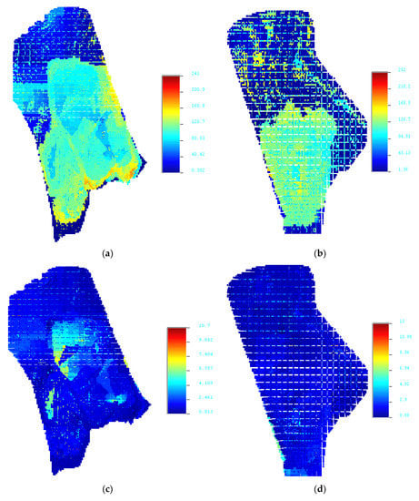 LSF and MgO maps of northern and southern blocks. (a) LSF of the southern block; (b) LSF of southern block; (c) MgO of southern block; (d) MgO of south blockern.