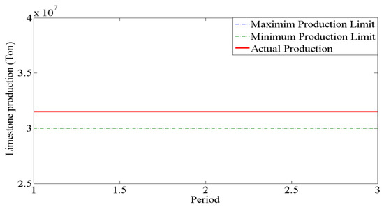 Model 1: limestone production with a production bound up to three periods.