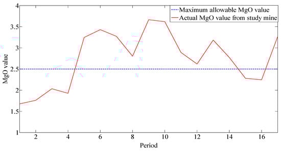 - Asad, M.W.A. Implementing a Blending Optimization Model for Short-Range Production Planning of Cement Quarry Operation. J. Min. Sci. 2012, 46, 525–535. [Google Scholar] [CrossRef]