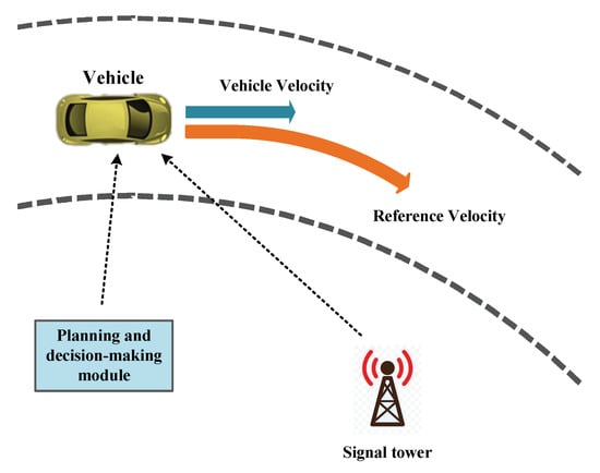 In recent decades, automated vehicles have developed rapidly, which are of great significance in improving driving comfort [1] and energy efficiency [2]. The automated driving system mainly includes positioning, perception, planning and decision-making, and control modules [3,4,5,6]. The planning and decision-making module decide the reference trajectory or reference velocity based on the information obtained by the sensing module and the state of the vehicle. The control module can track the reference trajectory or velocity by regulating the accelerator, brake, and steering wheel of vehicles.