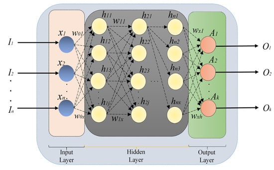 The Artificial Neural Network (ANN) is a popular tool for solving regression and classification issues. During the model construction phase, the human brain system structure is emulated [59]. When looking at the model structure, there are three layers: the input layer, the hidden layer, and the output layer. When the layers are investigated, it is discovered that the information generated in each layer is multiplied by weight coefficient w and sent to the next layer [60]. Figure 5 depicts a typical neural network structure.