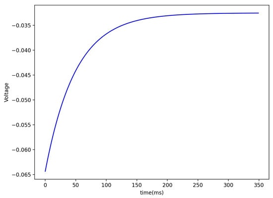 The voltage charging model of the RC circuit allows us to simulate the potential movement of neurons, so the resulting changes in the potential of neurons due to stimuli outside the network can be shown in Figure 7. The potential change over time can be expressed as follows: