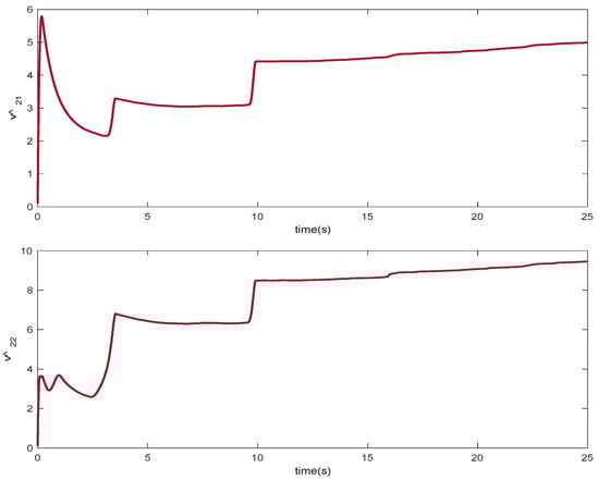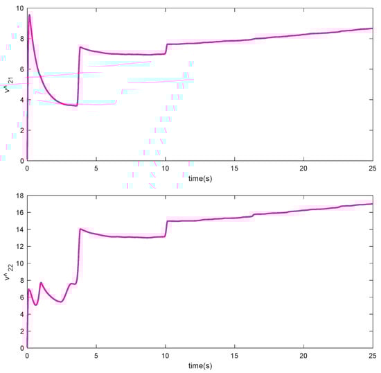 where and are the unknown maximum eigenvalues of matrix and , respectively, which are estimated by adaptive law as