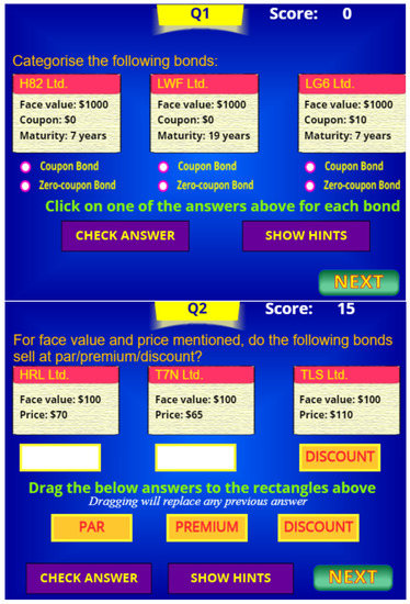 As Shin [25] notes, a critical factor affecting students’ learning experience, especially in a distance education context, is the “transactional presence” level, i.e., the closeness to educators and learning facilities they feel during their higher education undertaking. Thus, simply managing the cognitive load through segmenting or simplifying learning tasks is not enough in such a context, and there is a need to plan digital contents, which enhances the transactional presence between the educator and the students. Additionally, the current generation of students comprises “digitally enhanced” individuals [26] with varying degrees of expectations about the impact of technology on their learning [27]. Students prefer a customised technology-based learning context meeting their personalised learning needs [28]. Thus, for effective teaching of finance in a high student diversity context, as in this research, there is a need to plan the structure of the digital learning environment congruent with the varying capabilities of students. Arguably, digital games customised to each student’s capability and interest can make an impact in such a context. Indeed, research suggests that digital games can improve the learning experience, especially if the game is played for fun [29]. Similar works point to the promise of technologies, such as virtual-reality-based design and co-design approaches, in developing educational materials [30,31,32].