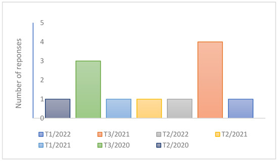 Figure 4 shows the semester when the responses to the survey occurred. Although the responses arose across terms, they were all based on the same intervention product, i.e., the same software version covering identical teaching materials. Thus, the results are comparable.